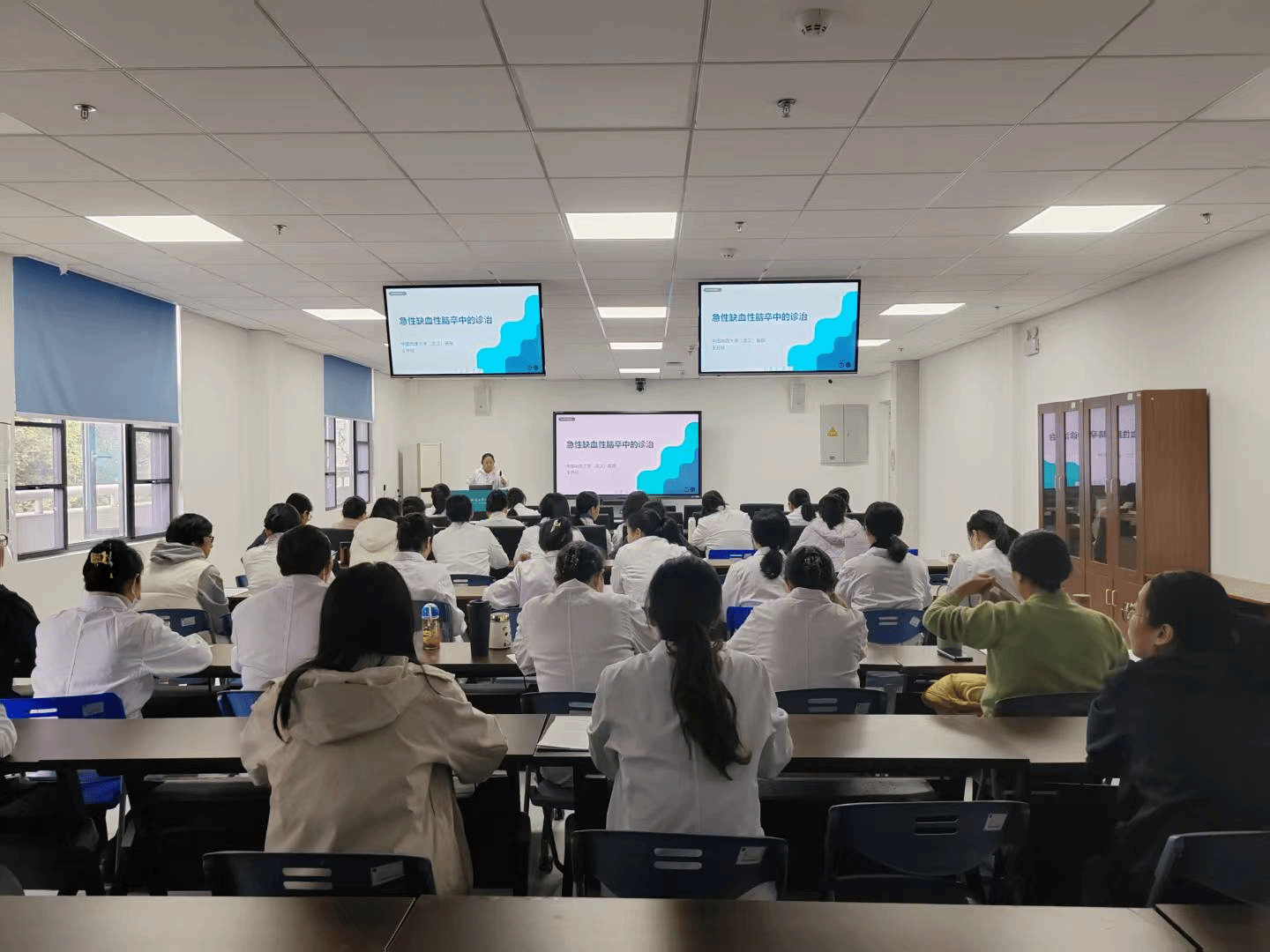 急诊科王开欣主任作了题为《急性缺血性脑卒中的识别和诊治》的专题培训。她结合丰富的临床案例,系统讲解了该病的快速识别要点、诊断思路及前沿治疗策略,强调了早期干预对改善患者预后的关键作用,为提升我院脑卒中救治水平提供了有力指导,为后续医院申报卒中防治站奠定了理论基础。