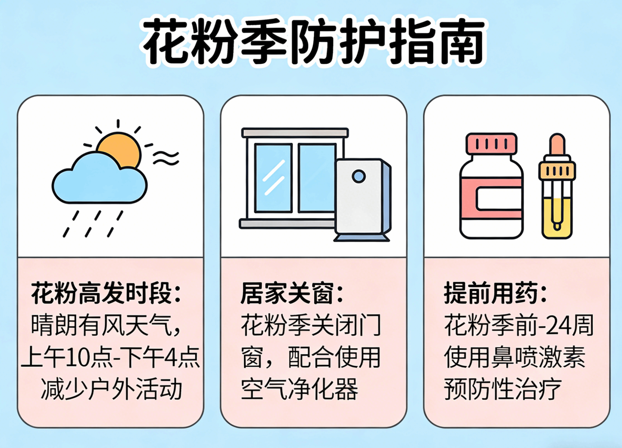 提前用药:如果您是“老病号”,不要等打喷嚏了再治。可在花粉季前2-4周开始使用鼻喷激素进行预防性治疗,能显著减轻发作时的严重程度。